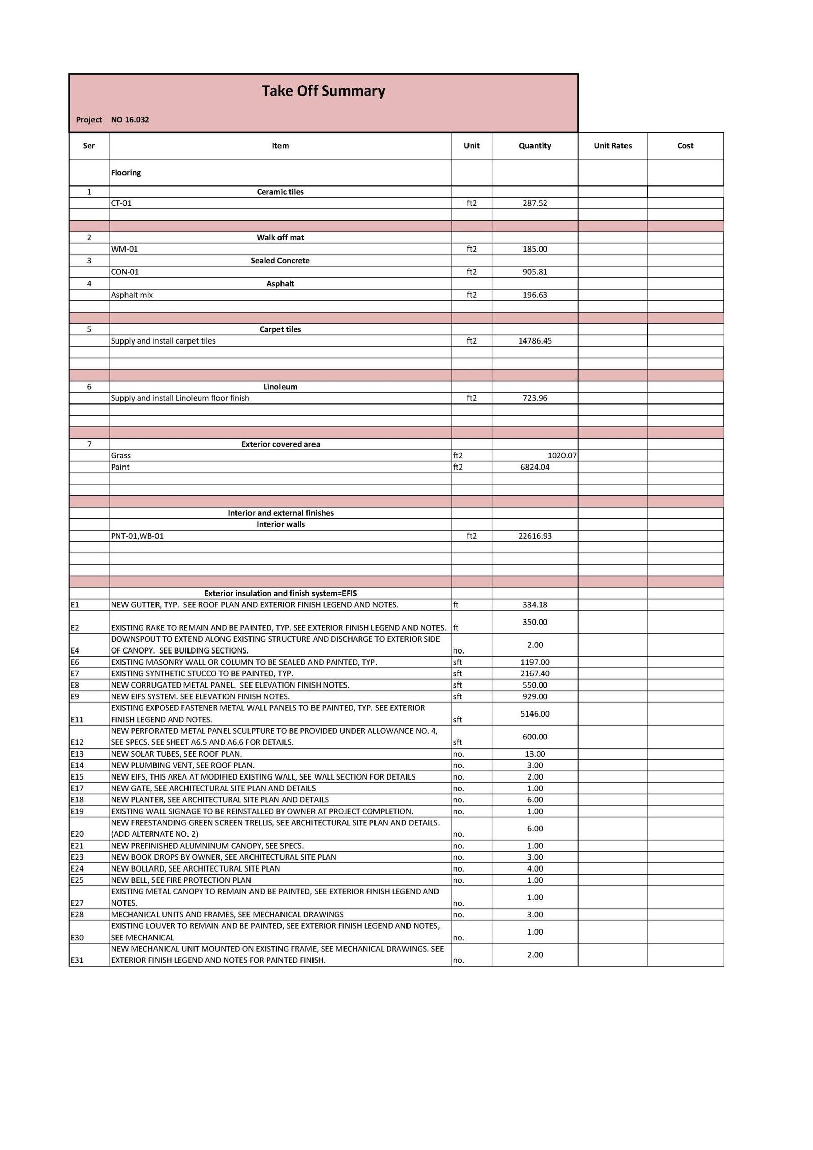 تفاصيل المشروع : حصر كميات لمشروع 1 في الولايات المتحدة الأمريكية